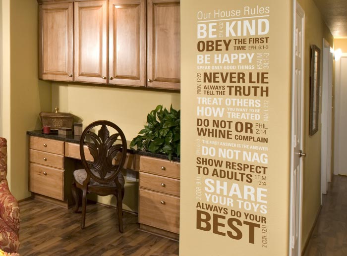 Now as adults with kids of our own, we’ve learned the importance of establishing and following guidelines for behavior—to maintain discipline and order in our households. Posting a Scripture House Rules wall decal in a place where it is highly visible will help remind every one of the family what habits we want to encourage.