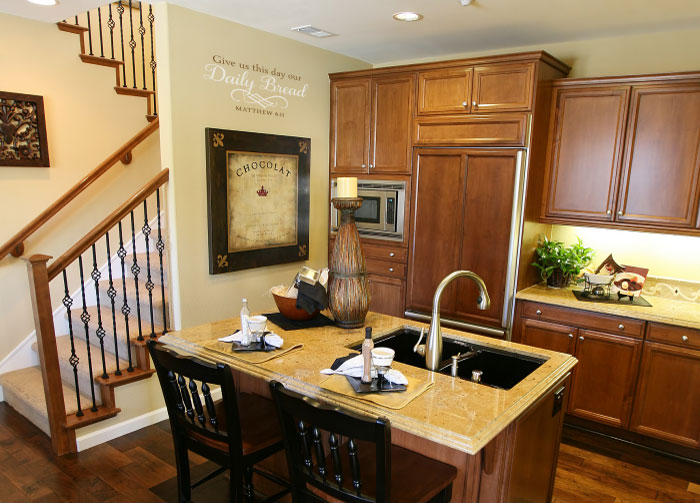 At WiseDecor we have scripture based wall words that are suitable for every room in your home. ‘Give us this day our Daily Bread’ wall words were applied in this kitchen. They look great against the underlying wall that’s behind a staircase. The lettering art gives them a stylish look and complement the framed picture below. They do tie in well with the kitchen island, wooden floor, light colored countertops and the dark cabinets. The wall letters will be a constant reminder of how family and friends ought to trust God to provide for them on a daily basis.
