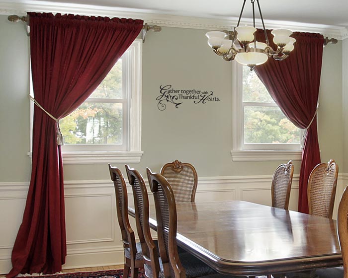 ‘Gather together with thankful hearts’ wall words are a great way to remind everyone to be thankful. The dining room is ideal because this is where family and friends gather to eat. Put them between sconces, or next to a window or display shelf in the dining room. Most people pray before eating because they realize that there are others who do not have anything to eat. It is a good time to say thank you!