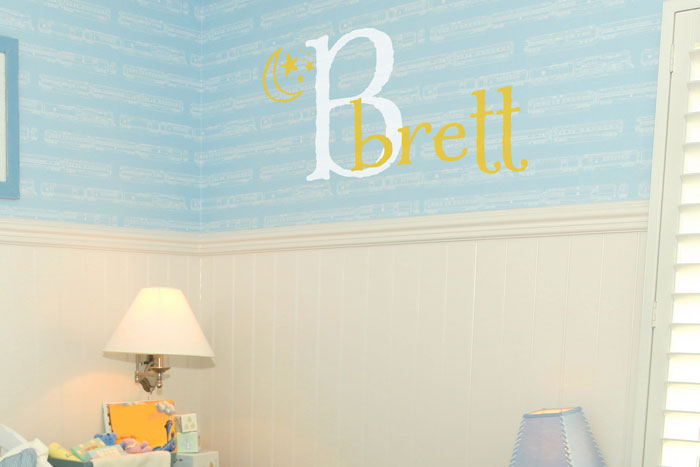 ‘Moon and Stars Name’ wall words are not only lovely to look at, they are a wonderful way of creating an interesting bedroom for your kid. These wall letters were applied on a blue surface that contrasts very well with them. This make them visible. They also tie in well with the rest of the decor in the room. They are the perfect accent! The molding along the middle of the wall, creates an eye catching visual display. The wall lettering are however the focal point in this room. Are you looking for theme based wall decorations for your kids room? Try ‘Moon and Stars’ wall decals from DecorativeLettering. They are great to look at and will turn that bedroom into a wonderful place! Have a look at our quotes library; you will not be disappointed. You may also submit a custom quote. Our designers are talented and experienced: you will end up with wall lettering that you and your kids will enjoy for a long time! Our products are affordable and designed to suit the lighting in your rooms. We recommend matte wall words for well lit rooms. Call or email: we would love to hear from you. Let us help you turn those walls into kid friendly works of art! |