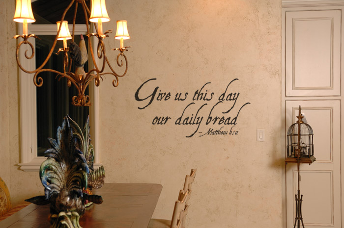 ‘Give us this day our daily bread. – Matthew 6:11’ wall decals are suitable for the dining room and the kitchen. They are a present reminder of who our source is. Apply them on wall spaces in these rooms: breakfast nook area, above or next to kitchen cabinets, between sconces, and any wall space in the dining room area! They will be the focal point and will give your room a sense of style! The wall letters will always remind you to thank God for his provision.