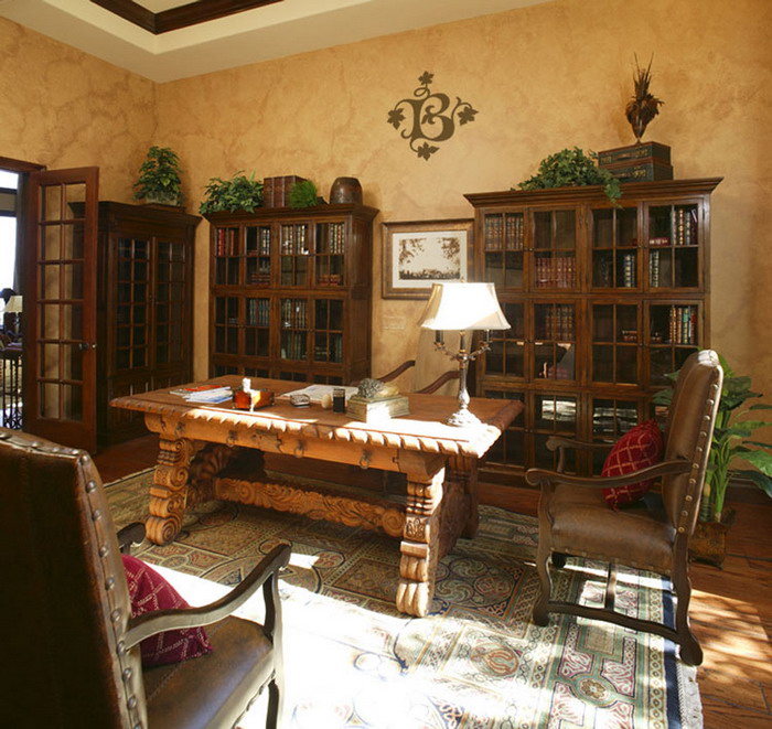 This wall lettering fits into any space. The huge book cabinets dominate this space, but the monogram steals the show. It is the focal point in this grand room! Its color does complement the underlying wall making it easy to see them. They also tie in well with the rest of the furniture in the room: sturdy table, lampshade and chair. The wall letters are elegant and are a great accent!
