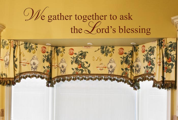 At DecorativeLettering we have wall quotes that remind friends and family to ask for God’s blessings whenever they’re together. ‘We gather together to ask the Lord’s blessing’ wall letters are suitable for the dining room. In this photo, they were applied above the fireplace. They do look hand painted but without the hassle that comes with painting tasks. As friends and family gather at the table, it is only fitting for one to count the blessings represented and this wall lettering captures it well. DecorativeLettering wall words are affordable, easy to apply onto your walls and they are the perfect accent. Affordable, because our prices are pocket-friendly and we also have a great customer awards program that makes purchases even cheaper. We ship worldwide, so you can have wall words no matter which part of the world you come from. If you are looking for wall lettering that causes you to break out in gratitude, have a look at our By Room’ category. We have a number of quotes available that are suitable for your dining room. Place your order online on our user-friendly web site. Our designers will deliver a quality product that will transform your dining room. Do call or email: we would love to from you. |