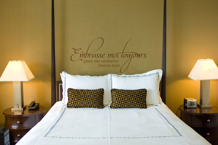 There’s nothing as perfectly romantic as ending the day with a kiss with your loved one. In Kristoffer Nyrop’s book entitled “The Kiss and its History” he says that love can be expressive of love “in the wildest and most comprehensive meaning of the word bringing a message of loyal affection, gratitude, compassion, sympathy, intense joy and profound sorrow” and having this wall decal says it all. This romantic French quote Embrasse moi toujours pour me souhaiter bonne nuit or Always Kiss Me Goodnight is an ideal reminder and reaffirmation of your love.