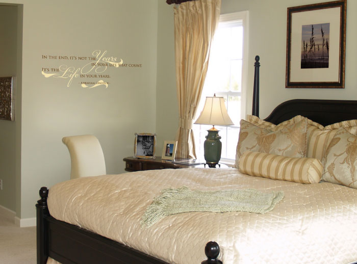 At DecorativeLettering, we have this quote available as wall decor! They look great on this gray underlying wall! The contrast makes them visible. The two colored wall words crowned in lettering art and writing style is ideal for creating a targeted mood! The wall decals will look amazing between sconces, above the fireplace, and on a photo wall.