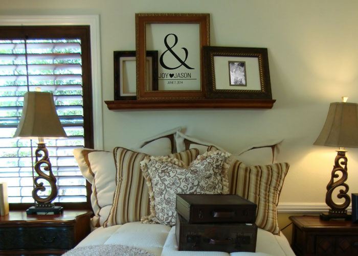 Decorating your bedroom can be tricky. WiseDecor has simplified it and made it practical at the same time! As can be seen from the photo, the wall words tie in to the furniture and accents in the room. They do complete the cozy atmosphere created with the brown and white color theme. The comforter, bedside lamps on night stands and the fluffy pillows tie in well with our black wall letters. What a welcoming space it has turned out to be!