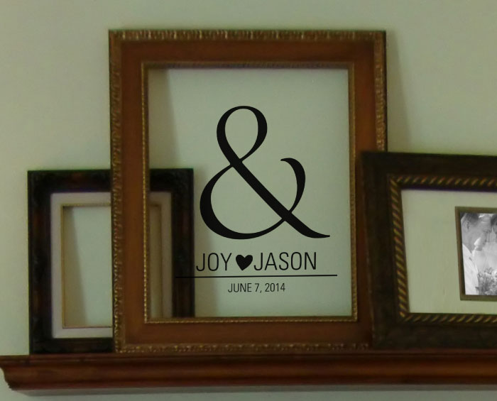 Make a statement with our Ampersand custom name with heart collection. Have a look at a great example with the ‘Joy & Jason’ wall lettering in the image! They are the focal point in this room and they do look amazing behind the frame. We placed them just above the bed and a few inches from the window. They are the first eye catching thing Joy and Jason will see when they walk into their room. These are wall decals that speak volumes about their relationship!