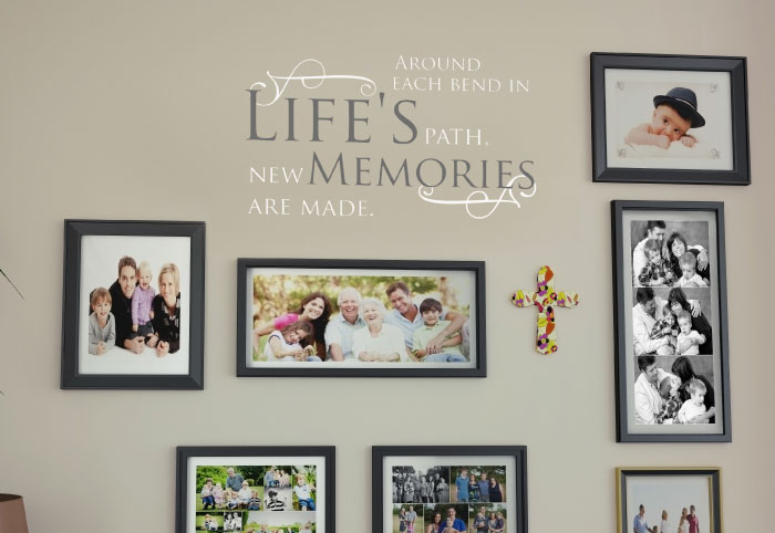 At WiseDecor, we have wall words that help you face each challenge head-on! ‘Around each bend in life’s path, new memories are made’ are a good example. They are suitable for any wall space in your home. We tried them out above this photo wall. The wall letters look amazing and tie in well with the framed photos. They also look great on the grey underlying wall. This is a creative way to remind your friends and family to make lemonade when life throws them a lemon!