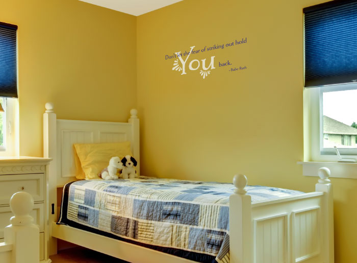 At WiseDecor, we have his famous quote available as wall decor! ‘Don’t let the fear of striking out hold you back.- Babe Ruth’ wall words look great in this room! The two colored wall lettering are at home on a flattering underlying wall! They do tie in well with the high quality finishing in this room: bathtub, candle stands and tiled floor. Your family will enjoy taking a bath in a space that has such creative wall decoration! Starting the day with such inspiring words on their minds will enable them to be bold and push them to fulfill their purpose!