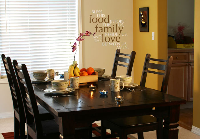 Such is the value of eating together as a family which makes the dining room one, if not the most special place in our homes. And because of this, we want a space that’s not just beautiful and comfortable but one that also reflects our family spirit. A fresh and innovative way to enhance this room is with a ‘Bless this food before us, this family beside us, and the love between us’ wall word décor— which is a lovely prayer expressing a family’s faith and gratitude to the Lord.