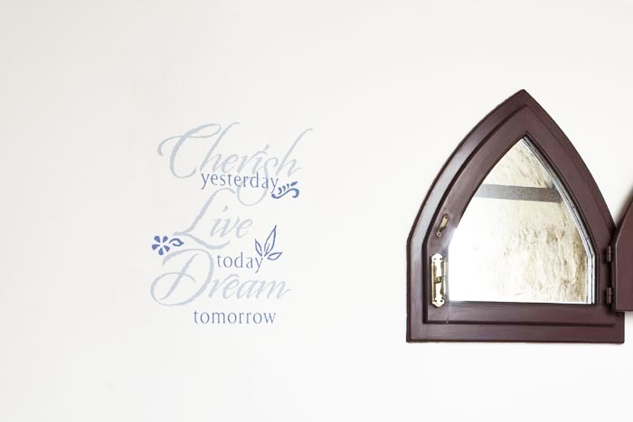 With the world zipping past all of us way too fast, it never hurts to take a moment and remember to, “Cherish Yesterday, Live Today, Dream Tomorrow”, and with the stunning appeal of wall decals, you can provide a simple yet exquisite reminder to all those that enter your home. Life is busy. There’s no doubt about it, and often times, we’re all too caught up in the stress of life and we forget to do just what this wall quote says, “Cherish Yesterday, Live Today, Dream Tomorrow”, and certainly being able to elegantly display this amazing advice amongst the walls of your home as a simple reminder is amazing. You never have to worry about letting life’s moments and memories slip by you again. Everyone knows that life is too short, but often times, we all forget, and with this vinyl wall lettering set, you don’t have to ever worry about forgetting such an important key to happiness.