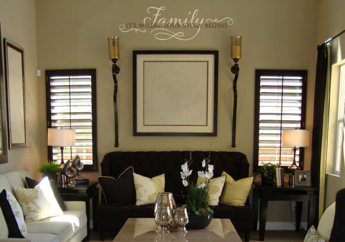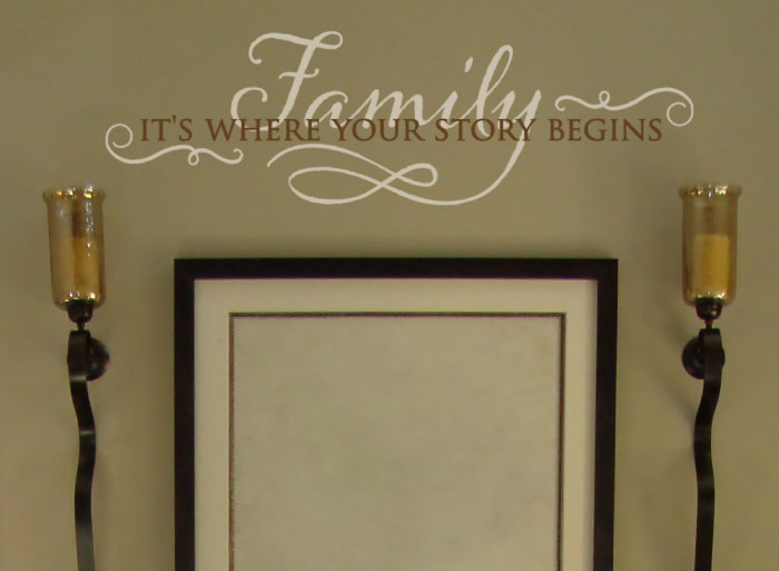 “Family – it’s where your story begins.” wall words are available from DecorativeLettering. They are suitable for all the rooms in your home. They are especially ideal for the family and living rooms and the kitchen because this is where families tend to gather. As can be seen in the photo, they do look amazing between the gold colored sconces and are the focal point! This room has a white, gray and black color theme. The cushions, lamp stands, flower vases and glasses on the coffee table and the wall quotes are great accents that brighten up the room. These stylish wall letters are just right for this trendy yet comfortable room. This family will certainly have enjoyed their time together as they create their story!