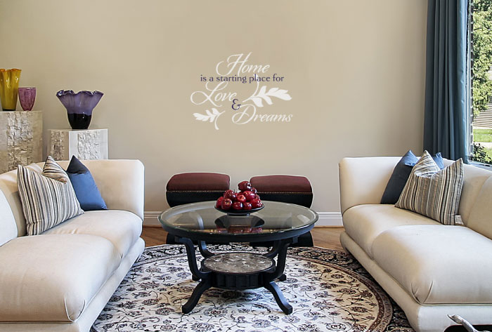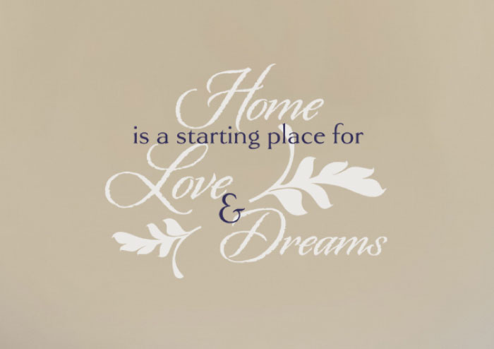 At DecorativeLettering, we have wall decor that helps you encourage your family to follow their dreams! ‘Home is a starting place for love and dreams’ vinyl wall letters describe this act of selfless love and is ideal for the family room. They look great in this space as shown in the photo. We applied them on a beige underlying wall and instantly got a new focal point! They do hold their own against the recessed lights, floor length, h curtains and awesome view. Below the lettering art on the floor is a pair of ottomans and they compliment each other well. Your family will love this inspiring space!