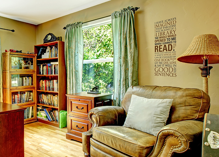 To get the best out of your lettering, choose the right colour, size and style that compliment what is already in the room. Also choose colours that will contrast with the wall colours to ensure visibility! For rooms that are well lit, such as this one, choose wall words that have matte to help deal with glare issues. If your library has more subtle colours, choose a lettering colour that is close to it. We want you to enjoy your space with our unique letters that are also very affordable! We accept payment through credit cards, PayPal and gift certificates. We also have a customer reward program that enables you to earn redeemable points with every lettering purchase!