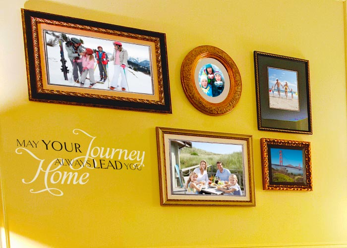 ‘May your journey always lead you home’ wall decals are it. They look great on this wall: they are the right photo wall caption! The black and white wall lettering is amazing against this harvest gold wall. These framed family photos have got a new lease of life! They are stylish and the ‘journey’ and ‘home’ keywords stand out and fit into the vacation and travel theme. This is a creative way to remember good times with your family! Our wall quotes make for unique gifts. They are ideal for birthdays, housewarming and anniversaries! Made from resin, they are durable. They are able to withstand extreme temperatures and will look amazing every season! Applying them is easy as is ordering them. Simply place your order on our user friendly website and our designers will work on it. They are experts and you will end up with quality wall decor! Wall letters from WiseDecor are affordable. We have an awards program that enables you to purchase more for less. Sign up! Refer us to a friend and if they purchase our wall words, they will get a discount on their first purchase! Get in touch with us and let us help you decorate your wall space with striking wall lettering! |