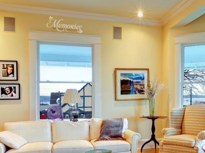 At DecorativeLettering, we have wall words that are suitable for all the rooms in your home! ‘Memories in the making’ wall letters are an excellent choice for the family room. They look great in this space. The spectacular views seen through the windows are not the only icing in this photo! The wall lettering holds its own against this backdrop. They are right at home on the contrasting underlying wall. They also tie in well with the furniture in the room. Friends and family will enjoy spending time in this space!