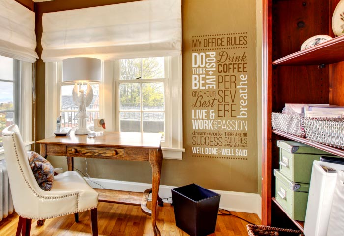 It is easy to create a focal point in the home office. At DecorativeLettering we have wall words that do just that!