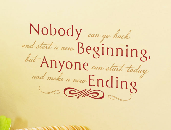 | Keep a positive mind at home or work with our wall decal quotes. Like many of Maria Robinson’s quotes “Nobody can go back and start a new beginning, but anyone can start today and make a new ending” is a saying that makes us look forward. Although remembering the past is essential for our learning process we should put less energy on regrets and frustrations. You cannot travel through time and mend mistakes but instead, you can stop now and create a fresh start.