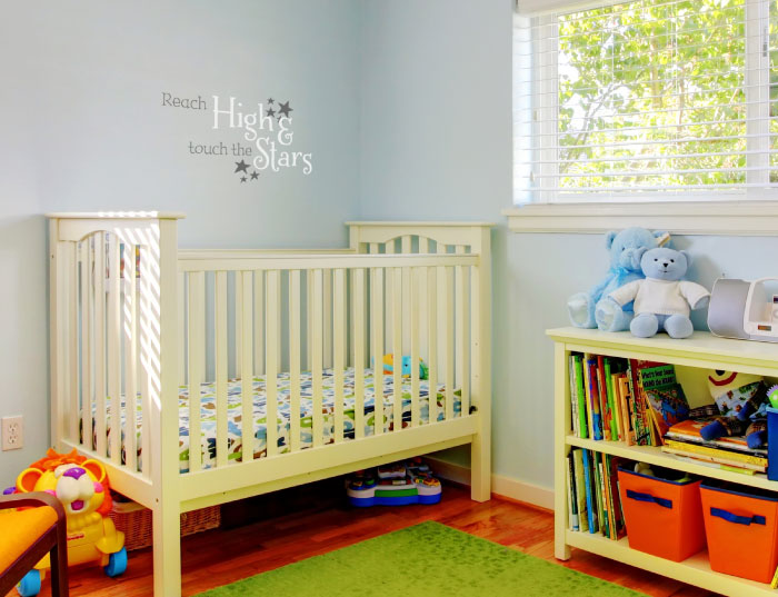 ‘Reach high and touch the stars’ wall words describe this kid. Waking up to, inspiring words on a daily basis will really boost a kid’s self-esteem! At DecorativeLettering, we have made it possible for you to decorate your home with words. Have a look at the baby’s room in this photo. Our wall letters look amazing above the baby cot! They are also great accents and tie into the decor in the room as do the bookshelf, toys, mat and the floor! Baby will grow up knowing that mum and dad want the very best for their kids. Now, that is inspiring!