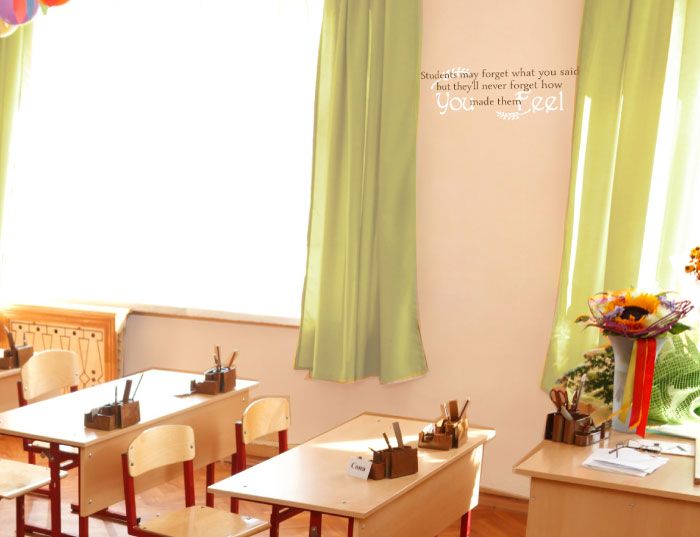 At WiseDecor, we have wall words that will do just that and more. ‘Students may forget what you said but they’ll never forget how you made them feel’ wall lettering will not only help you treat your pupils better, but they will also make your classroom look great! This classroom certainly looks it with them on the wall between the windows. The wall quotes tie in with the wooden tiled floor, desks, and chairs. Not only is this a delightful learning space for the children, but it is also where you, the teacher, will learn how to appreciate your students!