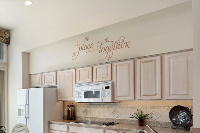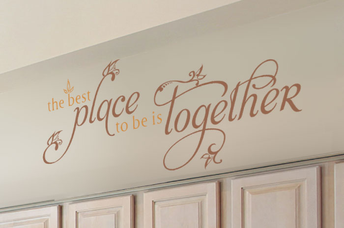 We applied this quote in the kitchen as wall lettering above the kitchen cabinets. The two colored wall letters are visible on the off-white underlying wall. They blend in with the seat covers of the wicker chairs around the glass dining table. The swirl embellishment adds a touch of style to the wall words making them look elegant. Families and friends will definitely enjoy their time in this kitchen and as they look on the wall quotes on the opposite wall, the message will gain importance and appreciation. Wall decals are a unique way to bring those drab walls in the kitchen or any other room to life. They are easy to maintain and can withstand extreme temperatures. As you can see in the photo, the huge French windows on the adjacent wall bring in lots of light into the kitchen. To counter the negative effect of light on wall words, we apply matte. This makes it easy to see and read the wall letters without putting a lot of pressure on your eyes. Are you looking for an ‘only one of its kind’ but affordable way to decorate your wall and encourage strong family ties at the same time? Try DecorativeLettering products! |