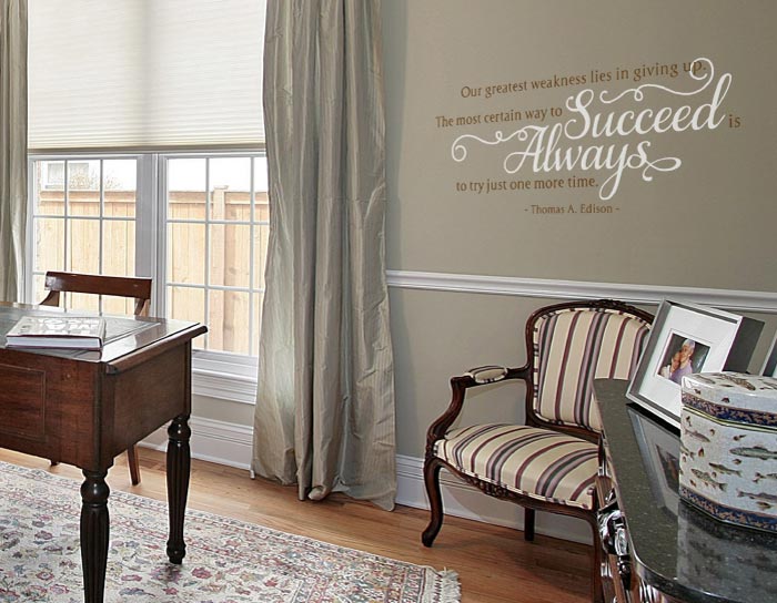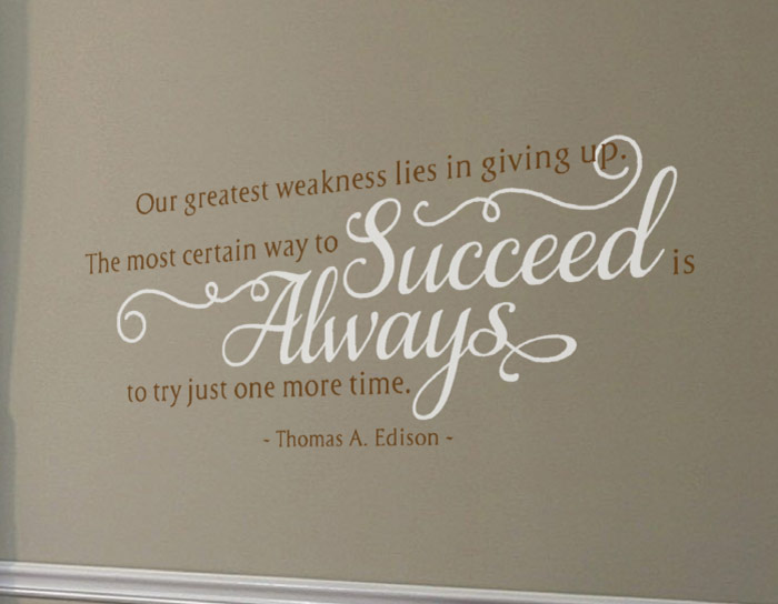 Our greatest weakness lies in giving up. The most certain way to succeed is always to try just one more time. – Thomas A. Edison Wall Decal – Advanced Options