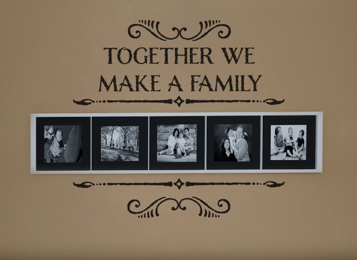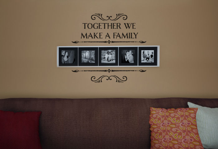 Wise Decor’s vinyl lettering wall decals can help you make a photo wall where you can display your treasured memories with your family. Hang framed photos of your wedding alongside newborn pictures of your children and your latest family picture to see how your family has grown through the years. Then, finish it off with a perfect vinyl lettering caption of “Together we make a family.”