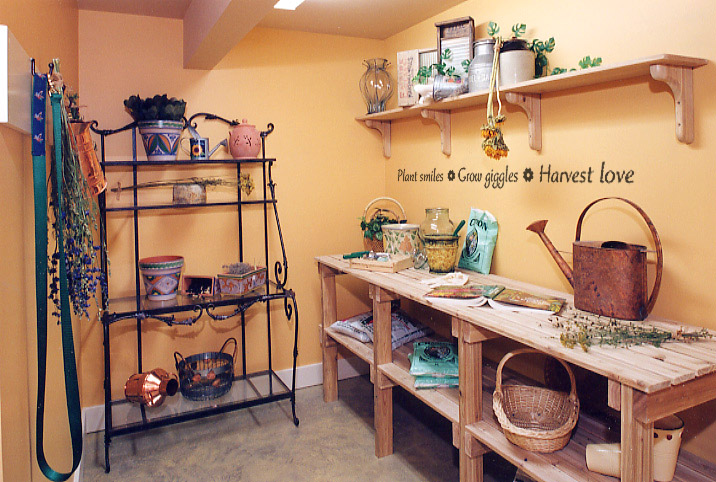 Decorative lettering and art provide an embellishment to rooms where you don’t have wall space for picture frames or other wall hangings, and the quote provides cheerful company when you’re working here alone. We’ve found that positive quotes like this, especially in small spaces, are effective mood boosters aside from being great wall accents. Check out our Gardening Room page for more quote ideas to place in your own gardening room.