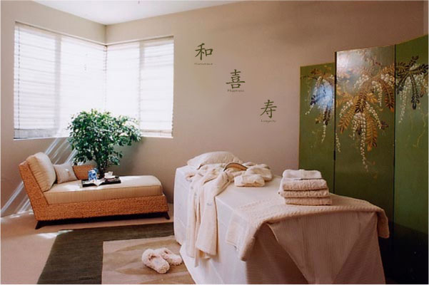 In this Asian-inspired spa room the words “Peace, Harmony, Longevity, Happiness, Inspiration” show in an instant the five components of a rewarding life. It’s amazing how much feeling and emotion is relayed using just five simple words. Remembering these five words and repeating them over again later on is a great way to keep life from spiraling out of control.