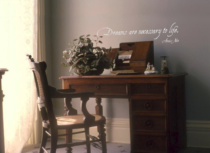 This home office manager chose the famous quotation by Anais Nin, “Dreams are necessary to life” and placed it right above her desk so that she could always be reminded of the importance of following her dreams. But she could have chosen this dream-themed saying, “If you can dream it, you can do it,” or something more light-hearted “Nothing is impossible to a willing heart,” or any of the hundreds of others we offer.