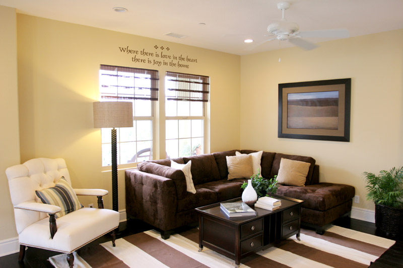 Art: Diamond 6-LHave you ever experienced that feeling of joy and contentment when you’re at home with your family, doing things everyone likes, chitchatting, playing with the children, eating, joking, and having fun together? We believe the key word is love. When we love each other there’s joy, and even when we encounter problems we know we’ll be able to weather them with the support of our loved ones. For there to be joy at home all it takes is for each one to love one another.Genuine love – accepting each other’s intrinsic faults and quirks and letting each other be – is the non-secret ingredient to a happy home. You can start with small gestures of thoughtfulness; the small, thoughtful notes and simple presents we give somebody to show that we care are like those few drops of sesame oil that we add to a dish to create that unique taste.Here’s a decorative lettering idea that will be perfect for those rooms in your home where your family likes to congregate. We took the quote “Where there is love in the heart there is Joy in the home” and placed it in the family room, above the windows. Done in the Decorative Lettering Style Dauphin (General Category) in Chocolate Brown at 4 inches height, it matches the chocolate colored sofa beautifully. On top of the quote, we placed three pieces of our Diamond – Lettering Art – 6-L. Simple and tasteful, the project lends the room an added touch of elegance and blends in comfortably with the room’s color theme.If you’re looking for icon-like graphics to place on your wall or other smooth surfaces such as a cabinet, mirror, or even a notebook, you’ll find a lot of ideas in our Lettering Art section. With over 30 colors to choose from and prices starting from $.50, you can’t go wrong. Got a project in mind but stumped for ideas? Email us at help@wisedecor.com and we’ll be glad to brainstorm with you.
