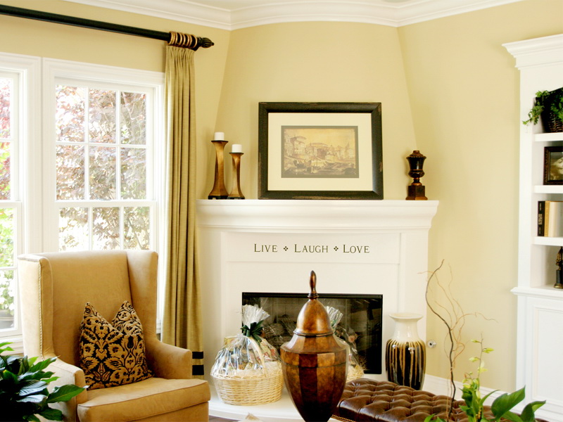 Art: Diamond (1-inch, Chocolate Brown)It’s always nice to spend time with family and friends, just chatting and reminiscing, especially with those whom you haven’t seen in a while. Fireside chats over coffee or wine – daytime or nighttime – are always relaxing and the warmth you feel is not just physical; it becomes emotional. As long as you’re with your loved ones anything goes, and even soda and chips will make great add-ons to the chat, never mind the coffee or wine.”Live, laugh, love” the words are perfect for this fireplace setting, and you can make the quote a wall accent through our decorative lettering. Our fireplace in the family room, with the decorative lettering displayed just below the fireplace mantel, is an example of how our easy projects can light up a room and enhance the ambiance.