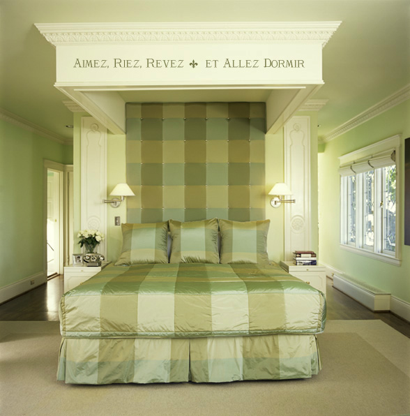 To get these country French decorating ideas for your bedroom out of your head and onto your walls, use our design feature. Select from our enormous collection of inspirational and romantic sayings, or if you have your own favorite, just type it in. Type it in English, French or any other language that uses the English alphabet. Now, let your words take on a whole new meaning by selecting an appropriate font for the phrase. Choose from nine different French-themed fonts including Paris, Chambord, Flaubert, and French court. If none of these seems right, experiment with the other 70+ that we offer. All you do is click on a different font and watch as your message changes right before your eyes. Now add some color. Burgundy, Medieval wine, teal, bright yellow, peacock blue and 30+ others are available. Once you see how much these messages change and enhance the look of your bedroom walls, choose another. You’ll find appropriate messages for French country kitchens, living rooms, even bathrooms!