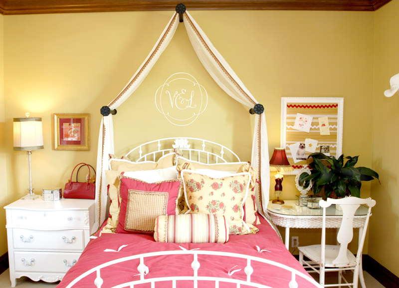 Our featured girl’s room shows the Filigree Monogram in white, measuring 16 inches wide and 16 inches high. Notice how the monogram adds a delicate, feminine touch to this room, and how elegant it looks above the headboard. If you want to use decorative lettering as an accent in your son’s or daughter’s bedroom wall but don’t want to place his/her name, then this is it! Want something more masculine? We recommend choosing an initial in black or chocolate brown.