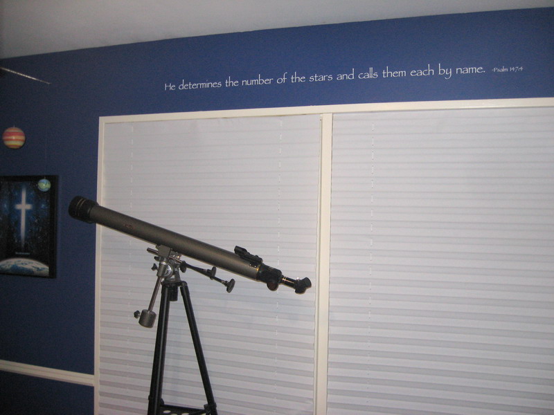 This was put above the windows in my son’s astronomy-themed bedroom.
