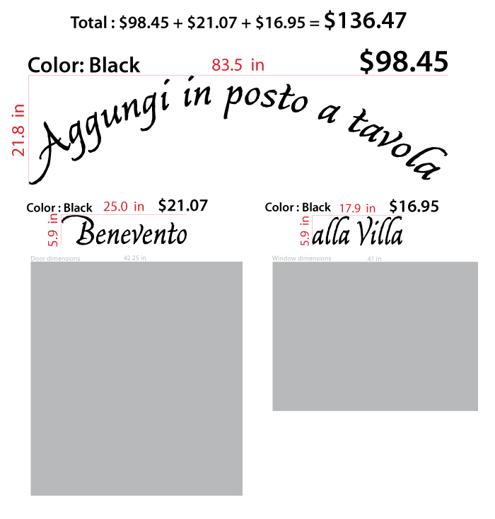 3 Custom lettering decals Color: Black Total design dimensions on the preview images