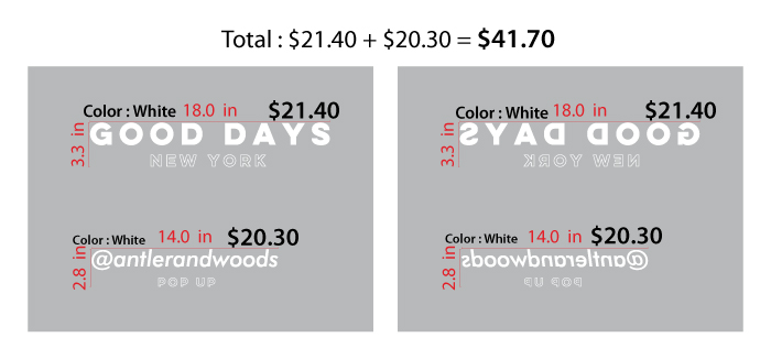 2 Custom lettering decals Color: White Total design dimensions on the preview images